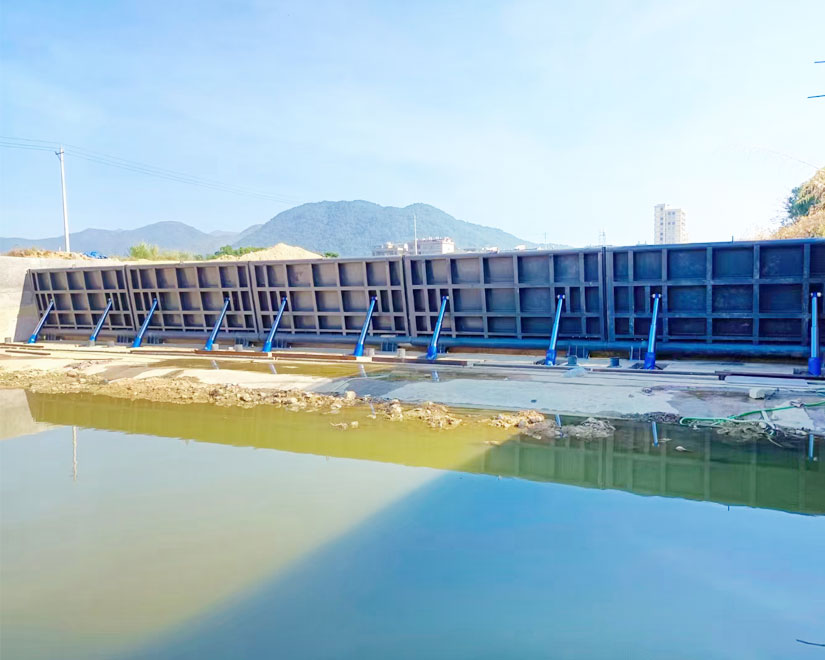 液压翻板闸门又称为液压坝是一种采用液压系统控制原理和自卸汽车力学原理,结合支墩坝水工结构型式的新型活动坝,具备挡水和泄水双重功能??梢宰远购?在出现山洪暴发等*状况下能够及时泄洪,对下游不造成过大冲击。
